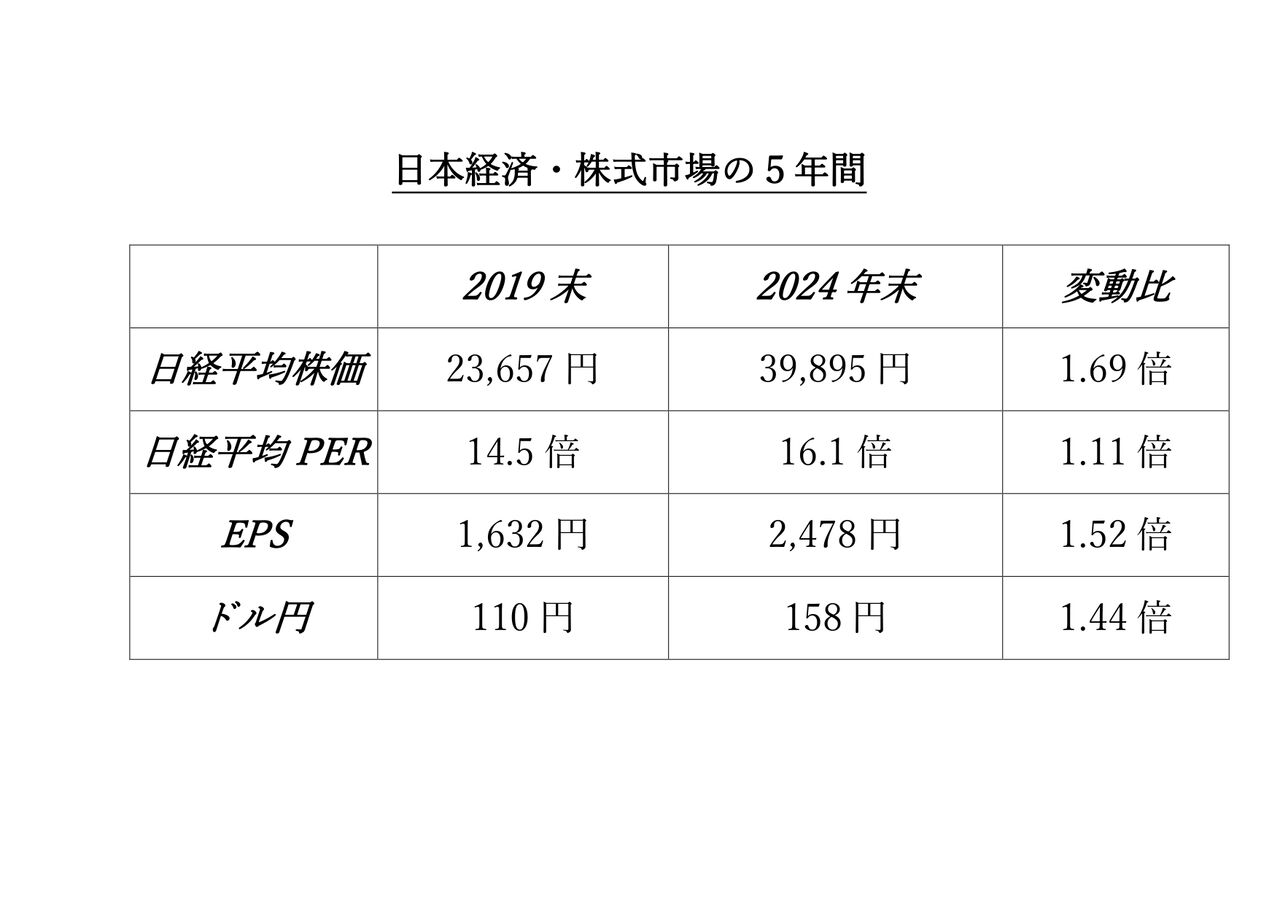 ◆ 日経新聞がそう出るなら・・・私は、5年前の年末との対比をしてみよう。・・・私の即席の比較表を添付しよう。